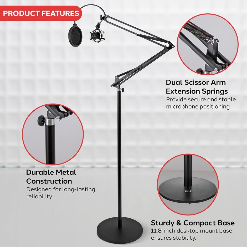 PYLE PMKSH28 Microphone Boom Suspension Stand, Black. Buyers Note - Disco
