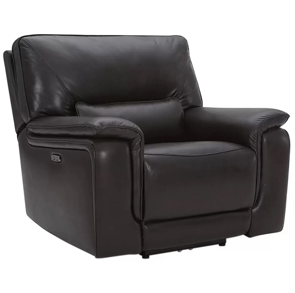 GILMAN CREEK Leather Power Recliner With Power Headrest, Dark Brown, W 115