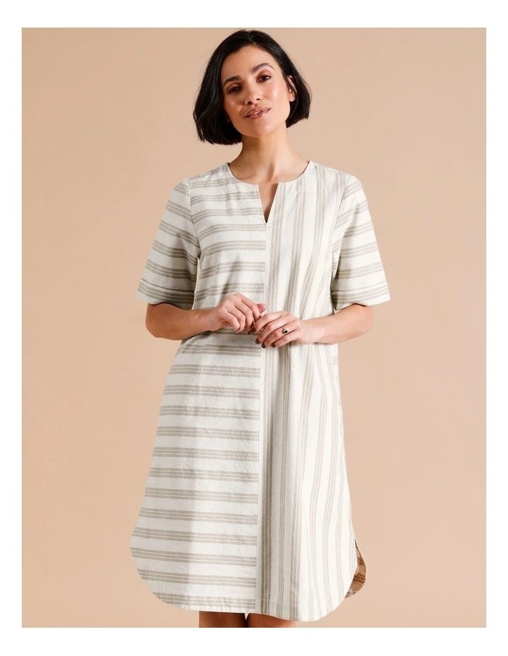 REGATTA Organic Cotton Blend Notch Neck Dress With 3/4 Sleeves And Pockets.