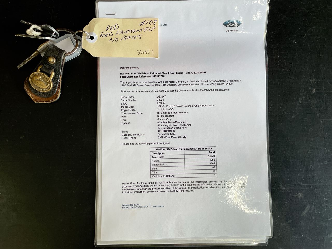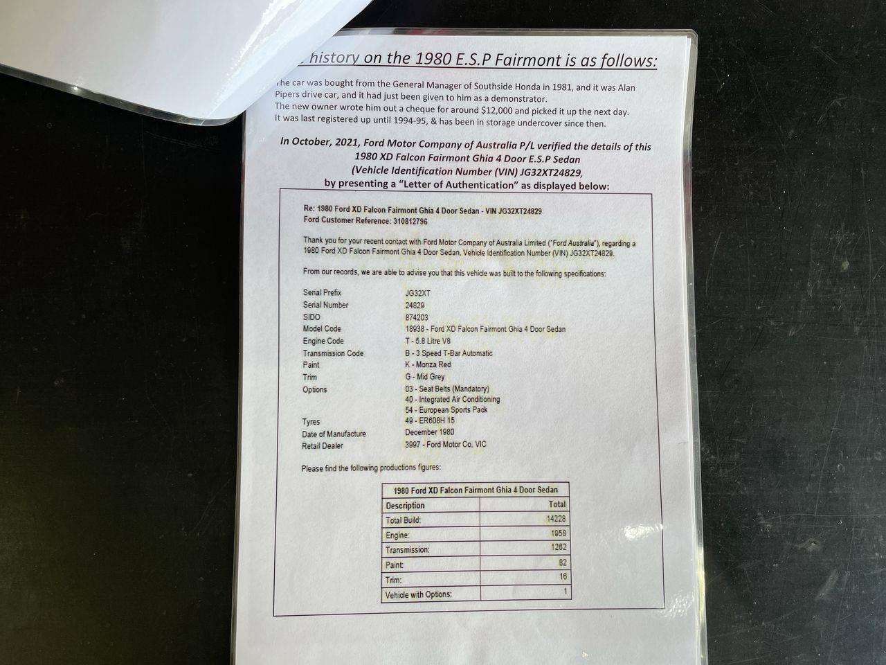 A rare and desirable classic car, the XD Fairmont Ghia ESP is certainly a car you don’t see every day. This car is a factory 351cid Cleveland V8 car, and a genuine Option 54 – as stated in the Ford Verification Letter that accompanies the vehicle. It is one of just 82 finished in Monza Red, one of just 16 finished in Monza Red with Mid Grey Trim, and it is the only car built with these exact build specifications, a one-of-one build combination car.