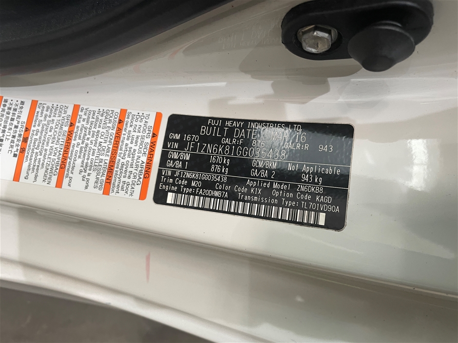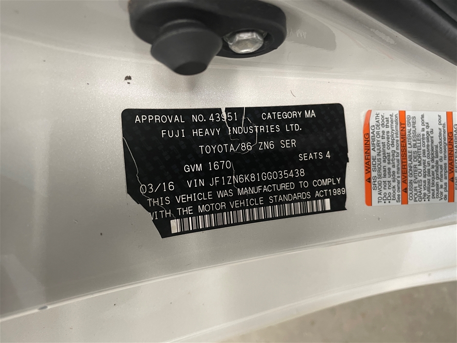 | Part of Sale | 2016 Toyota 86 GT ZN6 Manual Coupe | ||||||||||