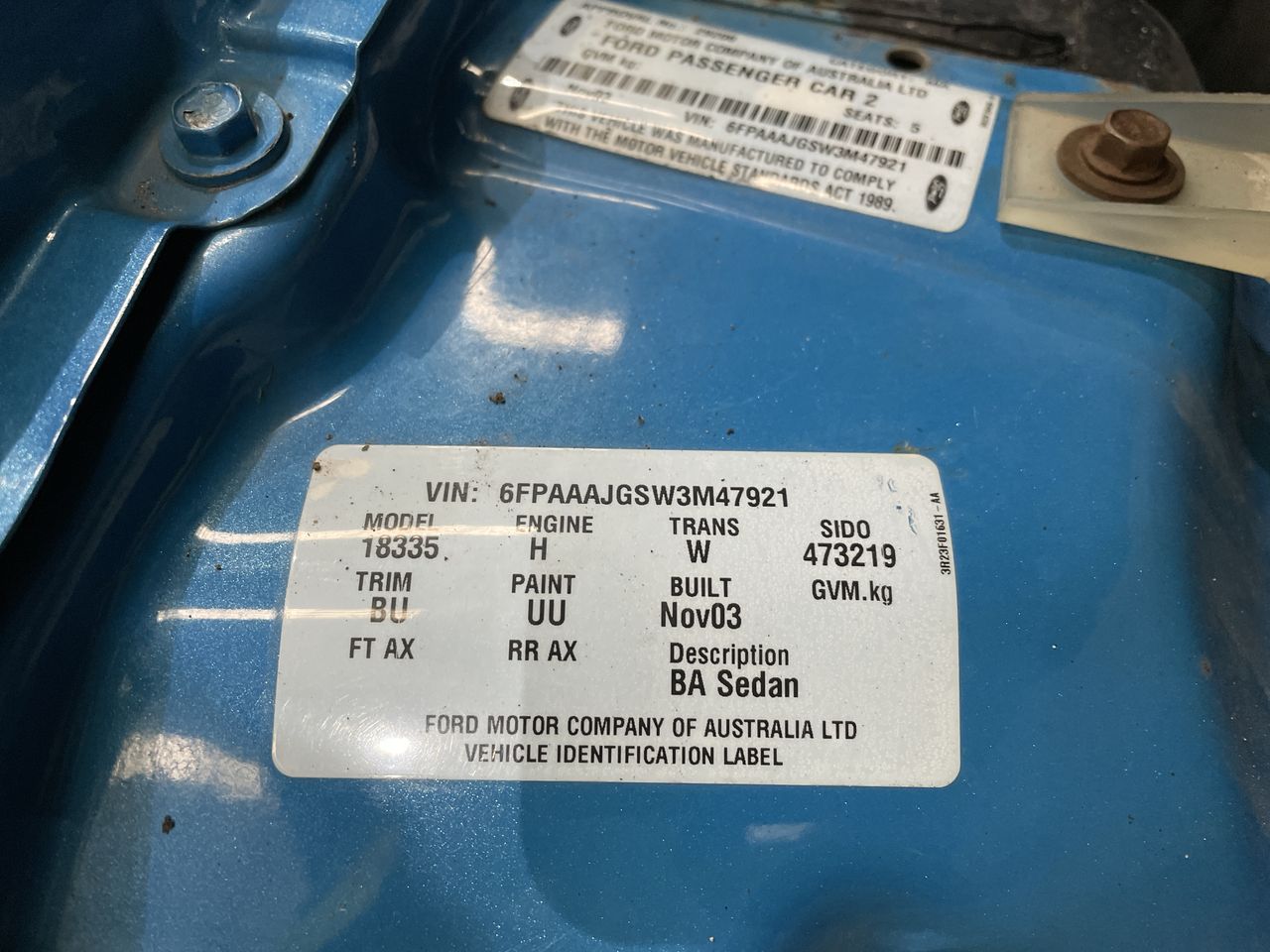 • VIN: 6FPAAAJGSW3M47921