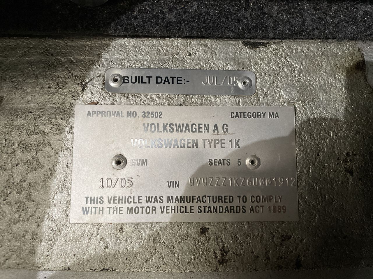 • VIN: WVWZZZ1KZ6U001912