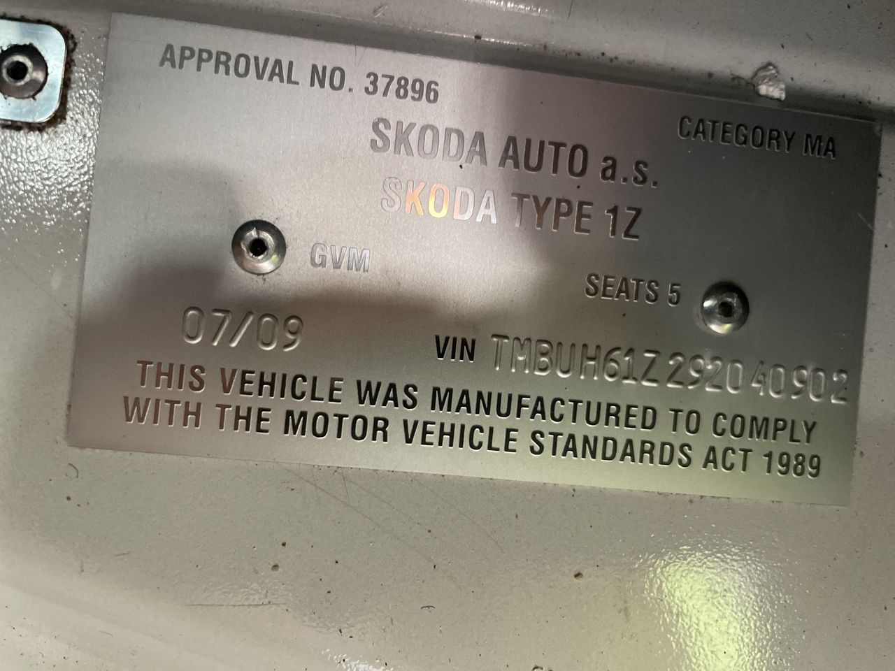• VIN: TMBUH61Z292040902