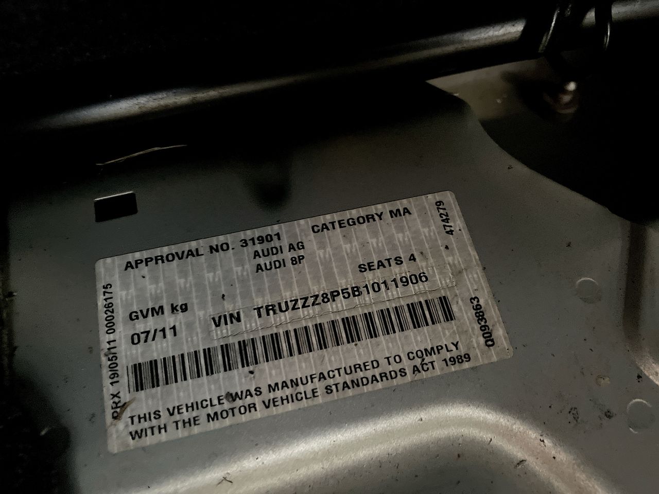 (SN:TRUZZZ8P5B1011906) (321723-1)