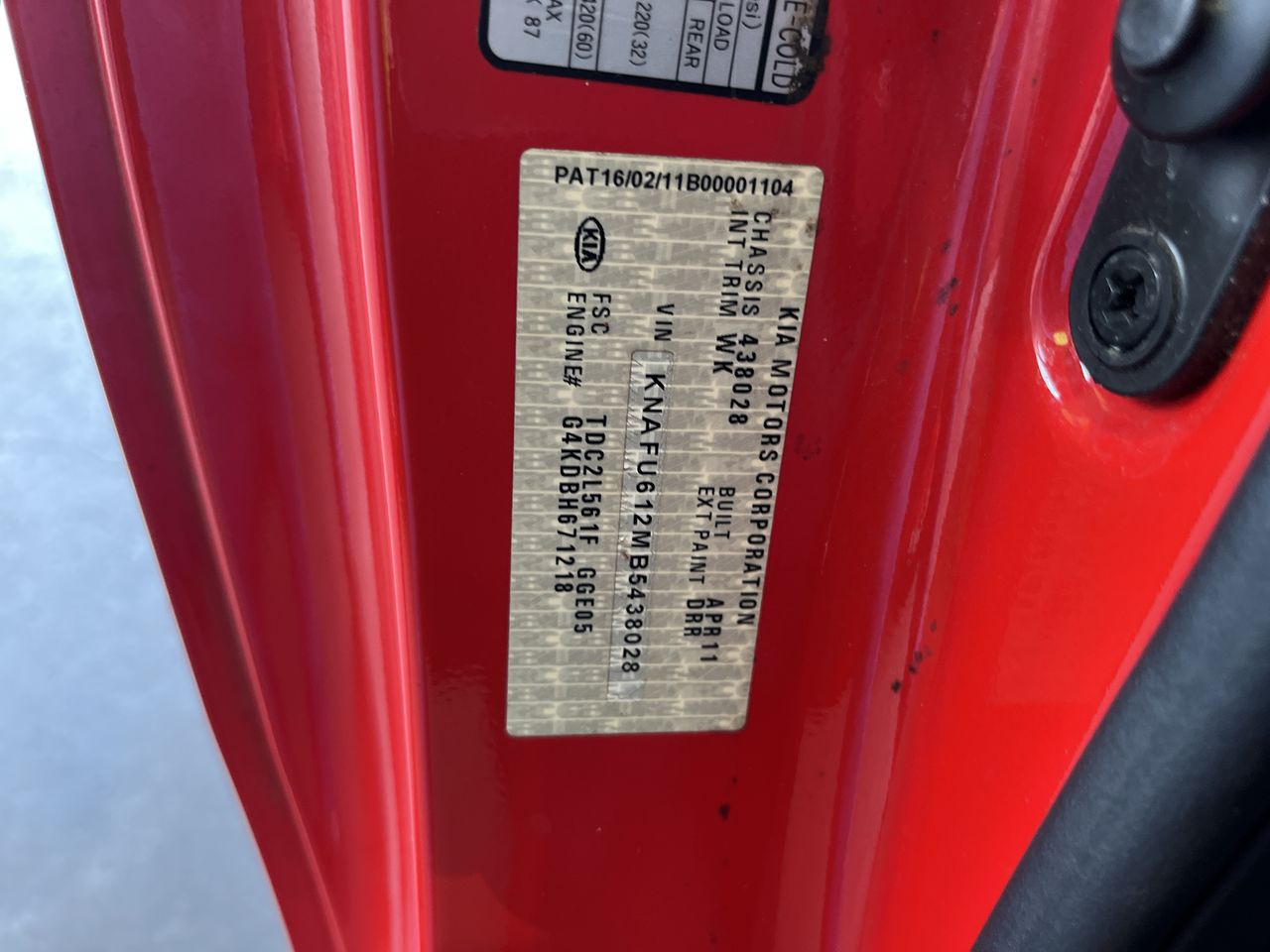 (SN:KNAFU612MB5438028) (305946-2612)