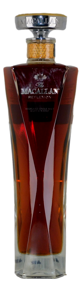 Sitting atop Ruby within the current 1824 series comes ``Reflexion``.Part of Macallan`s luxury 1824 Master collection and one of the three pinnacles of the range (the others being `M` and `No.6`), Reflexion pays homage to the distillery`s signature Sherry-influenced style, drawing on whiskies matured in first-fill sherry hogsheads – both American and Spanish oak. These are smaller casks, which allow for a greater surface area of wood to interact with the spirit.