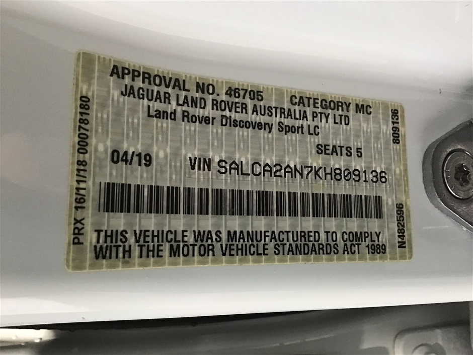 Part of Sale 2019 Land Rover DISCOVERY SPORT TD4 HSE 110KW L550 T/D 9