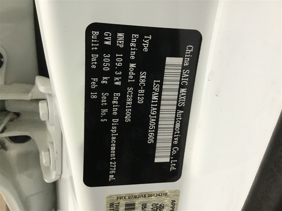 | Part of Sale | 2018 LDV T60 PRO Turbo Diesel Manual Dual Cab | ||||||||||||||