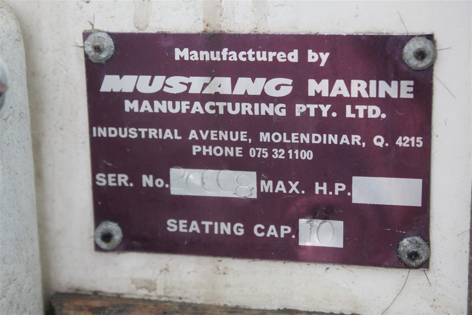 | Part of Sale | MUSTANG MARINE HALF CABIN BOAT - NO RESERVE | ||||||||||||||