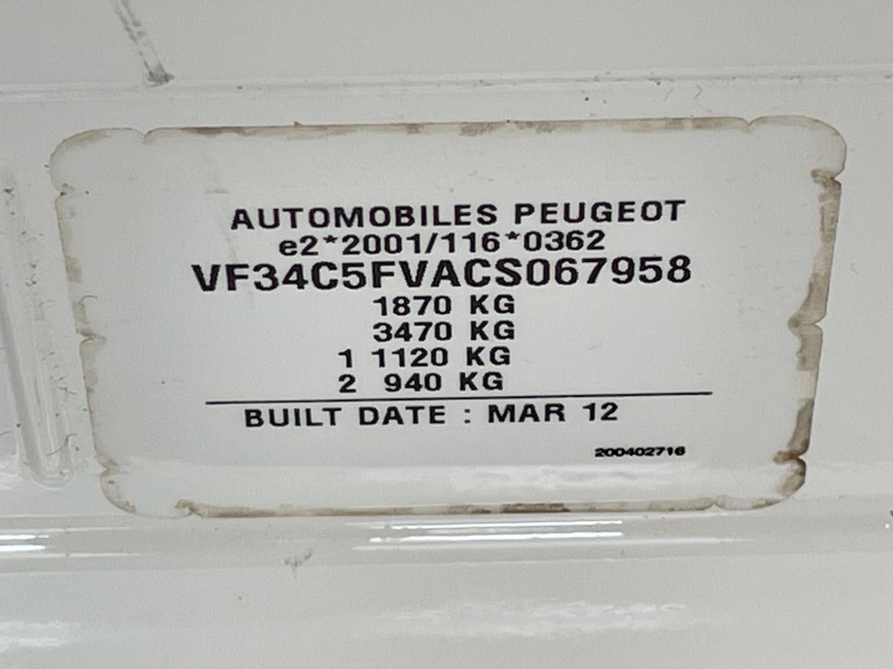 (SN:VF34C5FVACS067958) (103957-400)