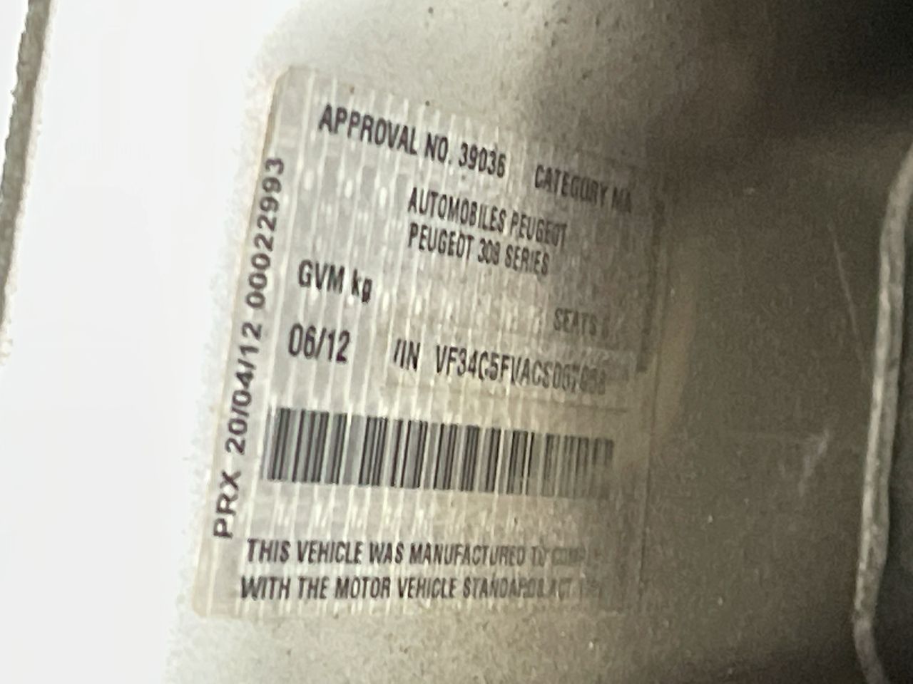 | Part of Sale | 2012 Peugeot 308 Active Turbo Auto | ||||||||||