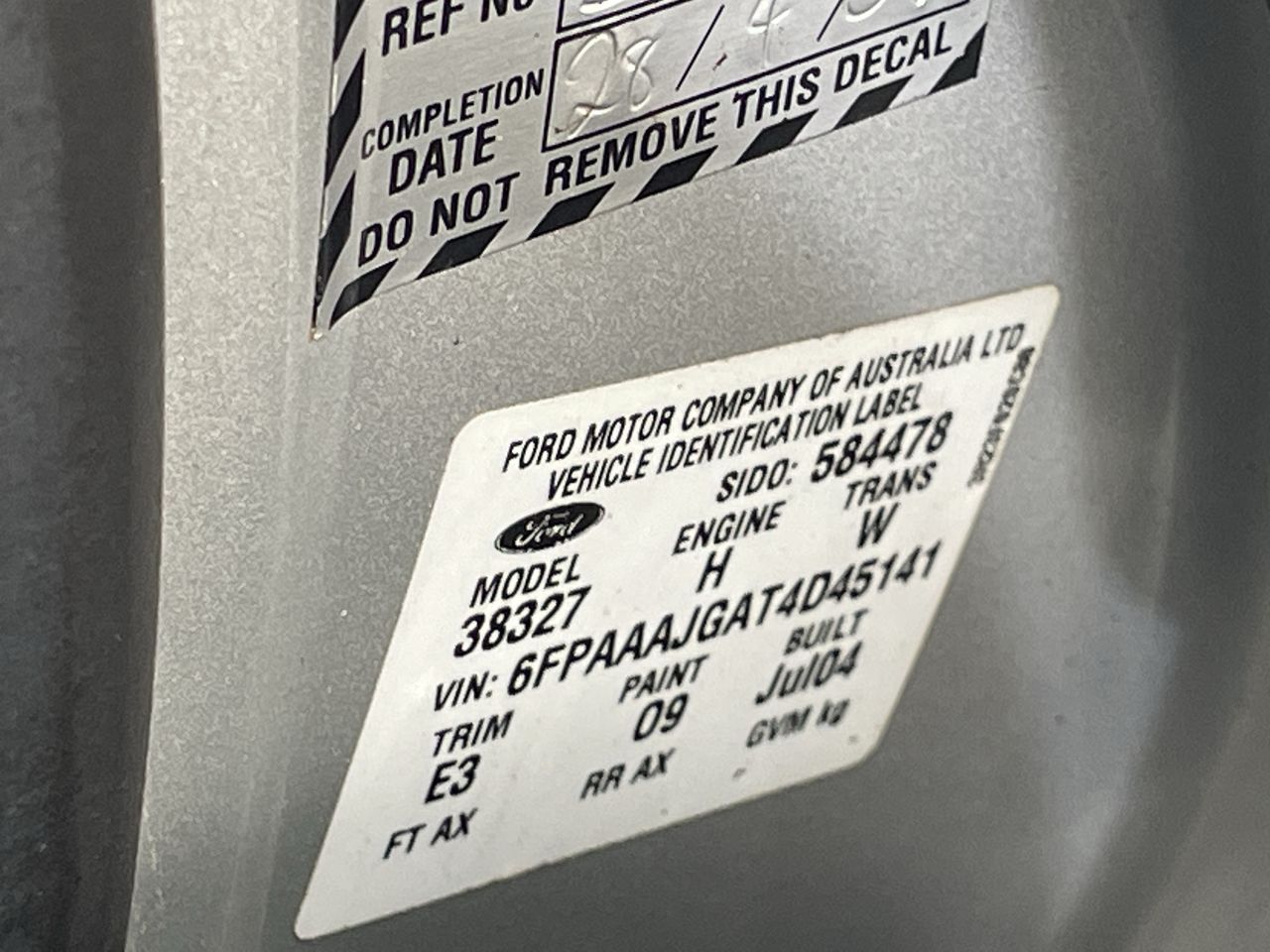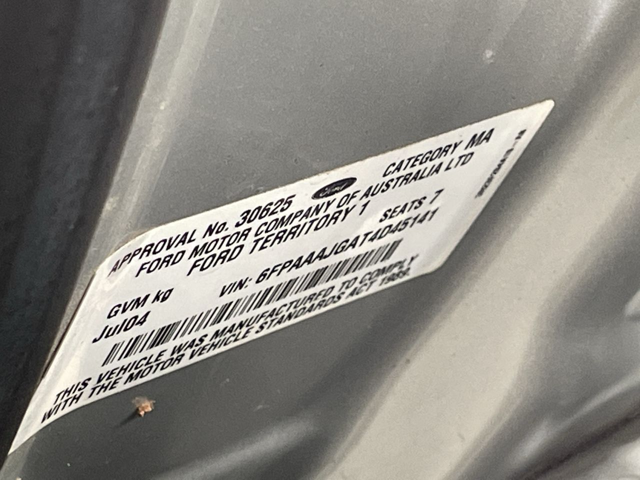 | Part of Sale | 2004 Ford Territory Ghia SX Auto | ||||||||||