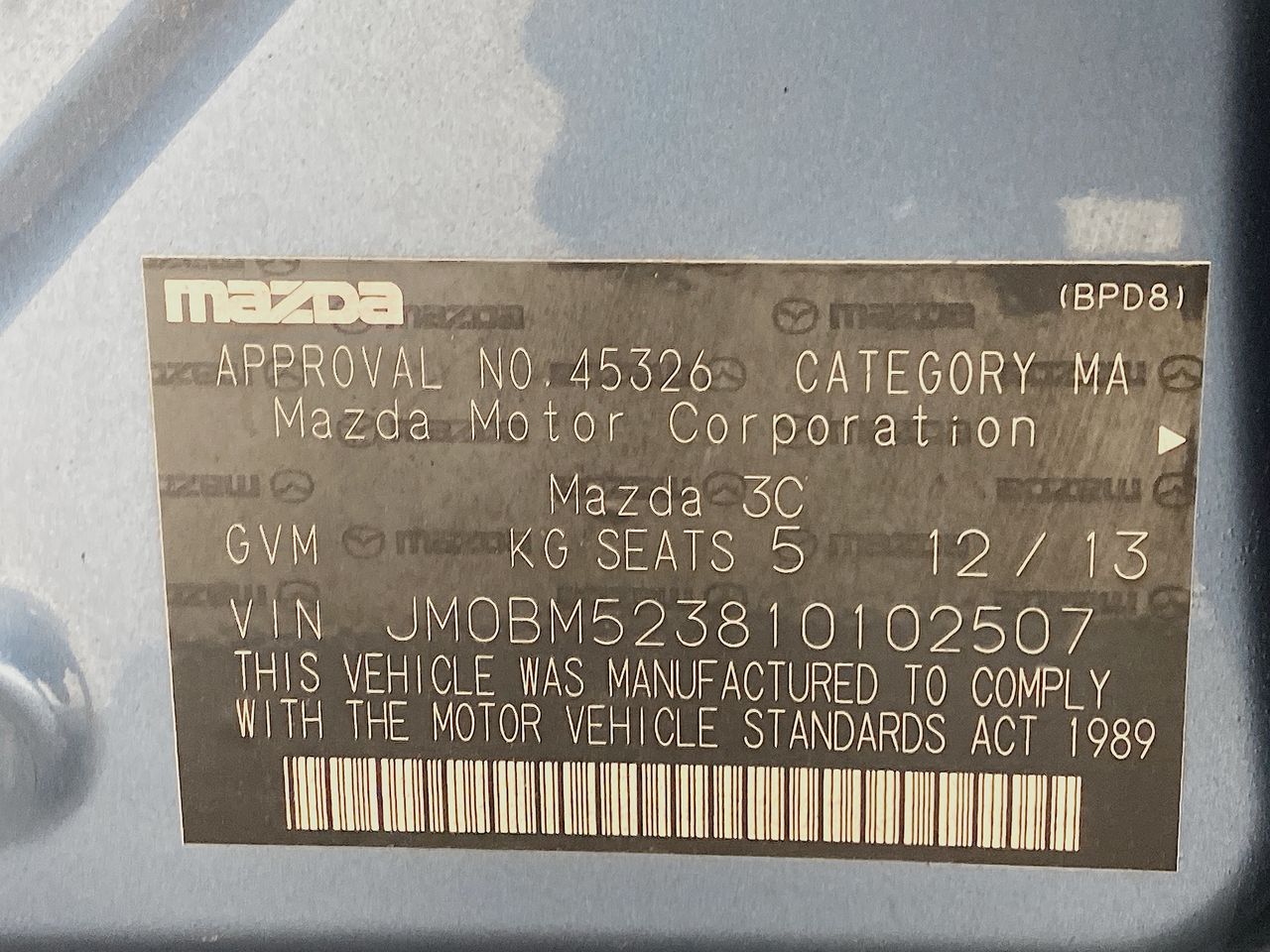 (SN:JM0BM523810102507) (119416-1)