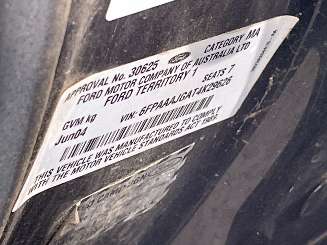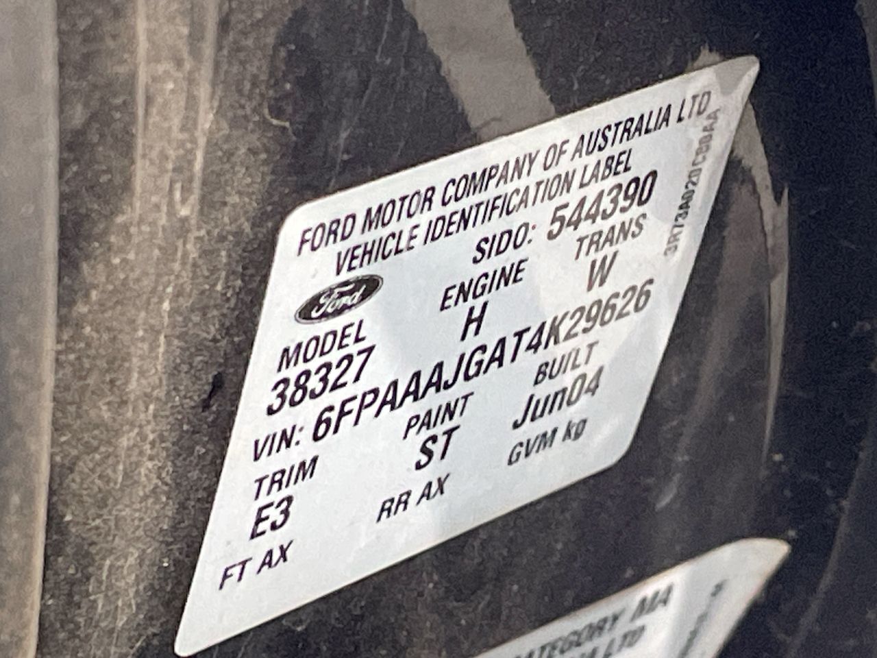 • VIN: 6FPAAAJGAT4K29626