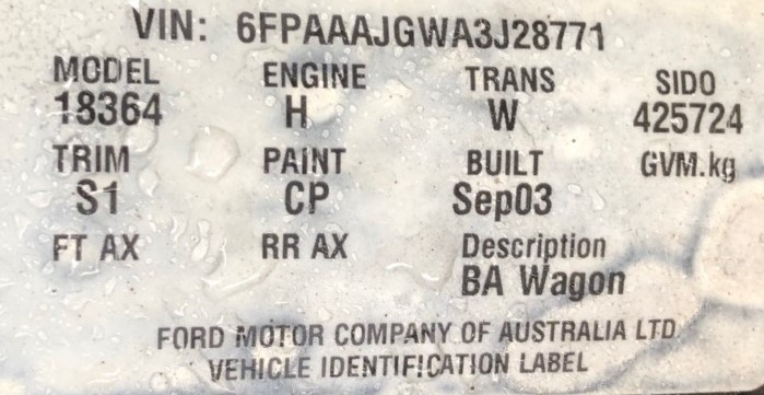| Part of Sale | Ford Falcon Futura BA Automatic Wagon | ||||||||||||||
