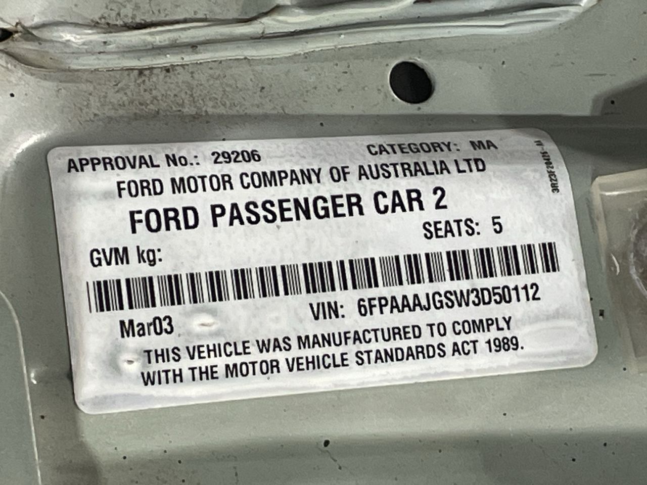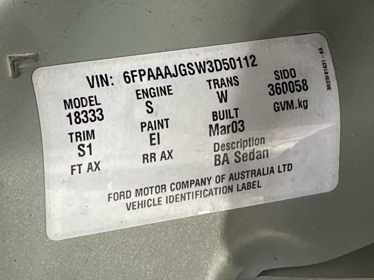 | Part of Sale | 2003 Ford Falcon Futura BA Auto | ||||||||||||||