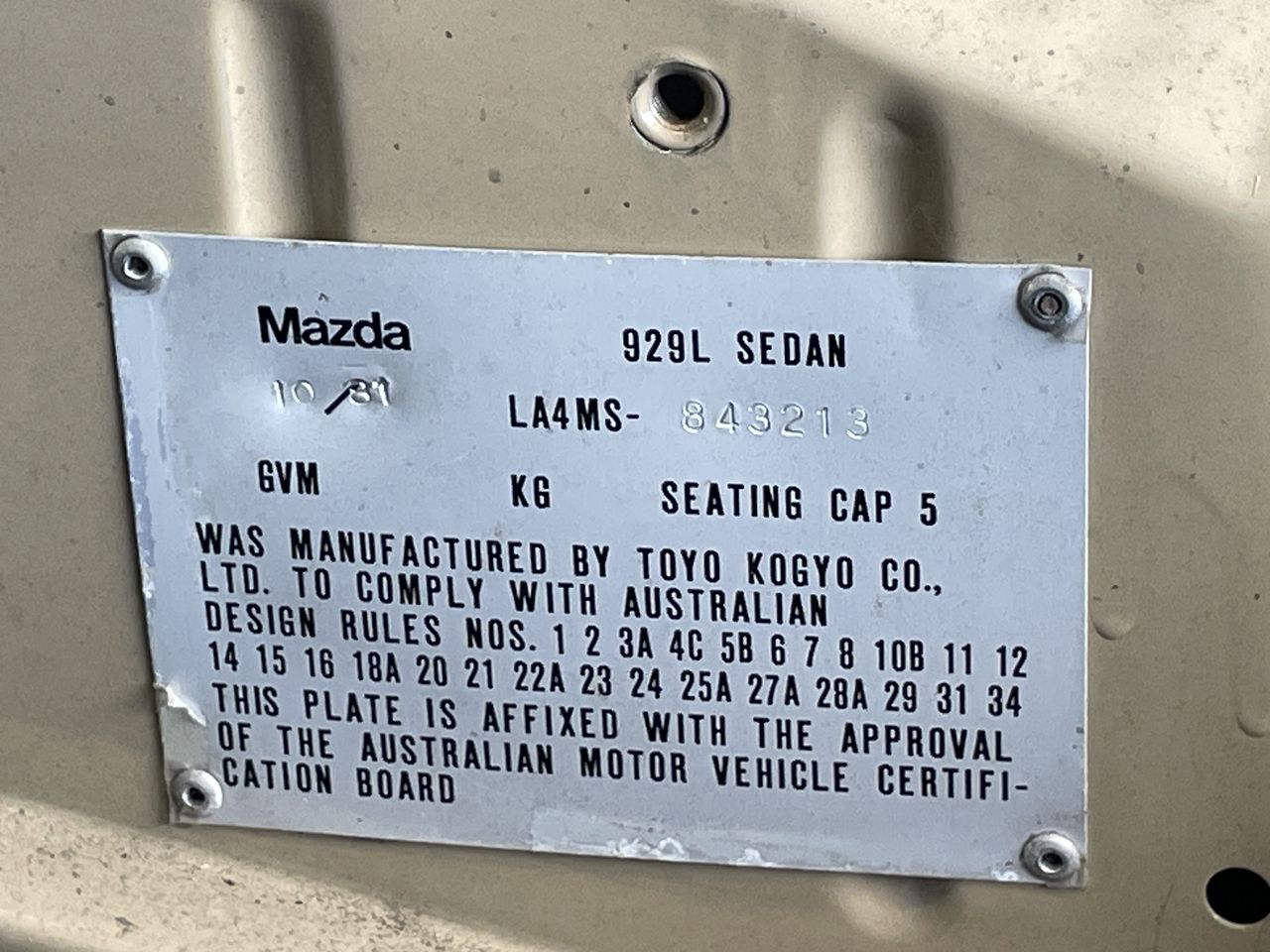 | Part of Sale | 1981 Mazda 929L Automatic Sedan | ||||