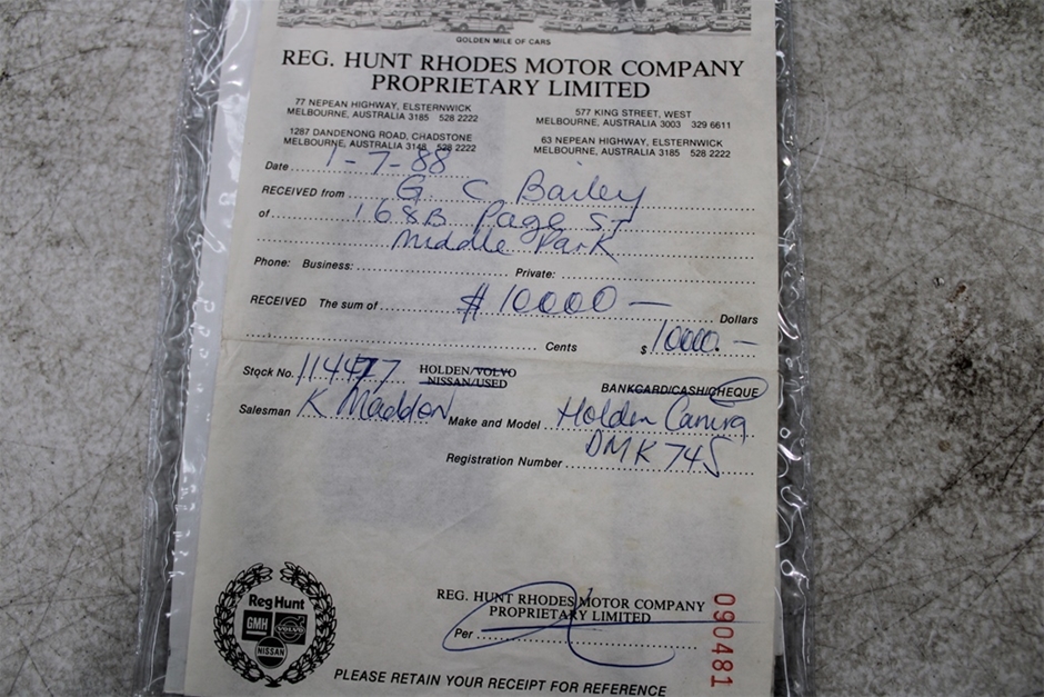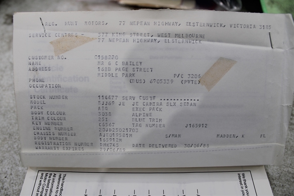 | Part of Sale | 1988 Holden JE Camira SLX Executive Automatic Sedan | ||||