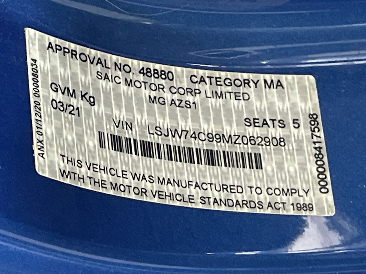 • VIN: LSJW74C99MZ062908