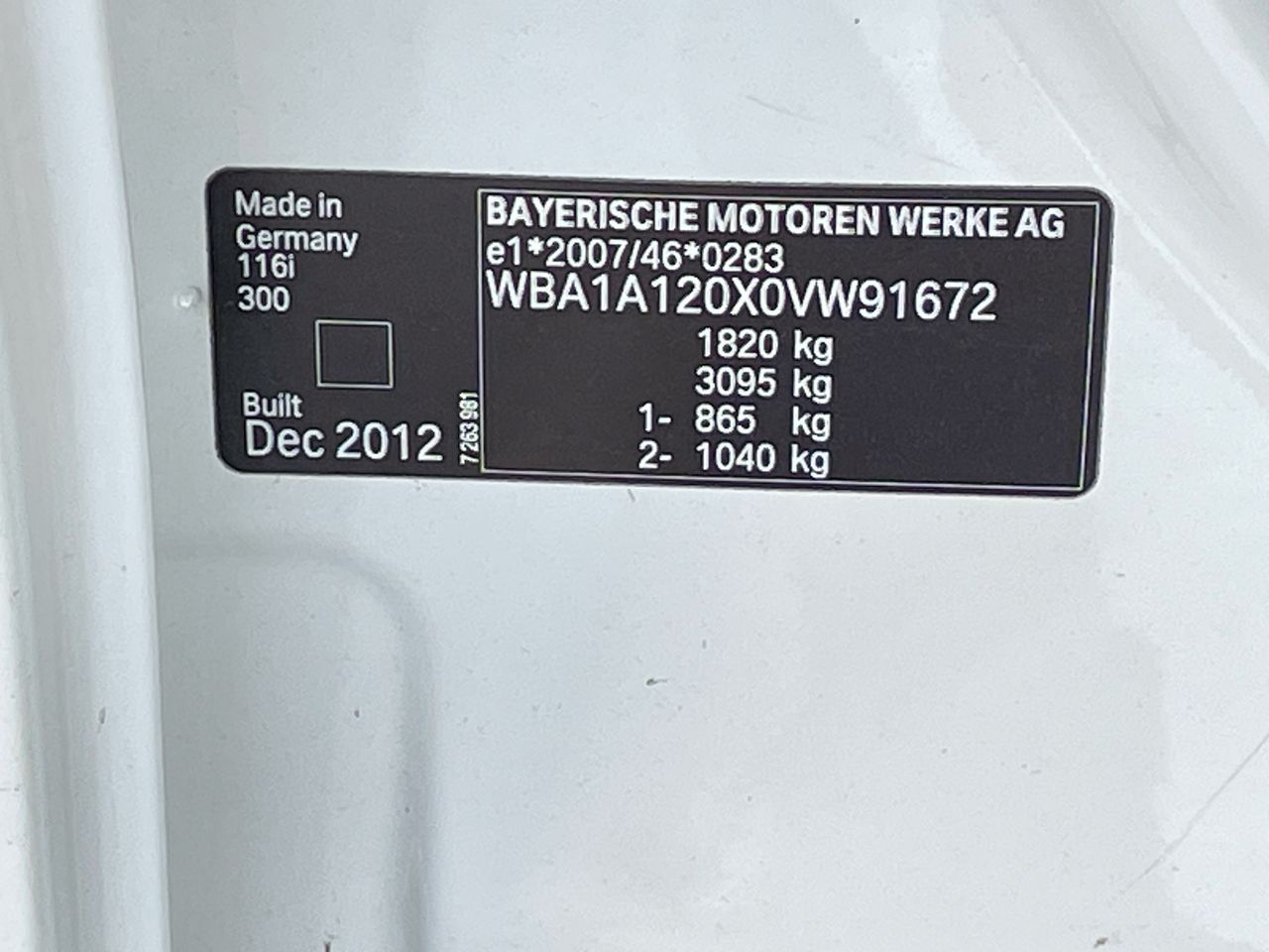 (SN:WBA1A120X0VW91672) (123619-1)