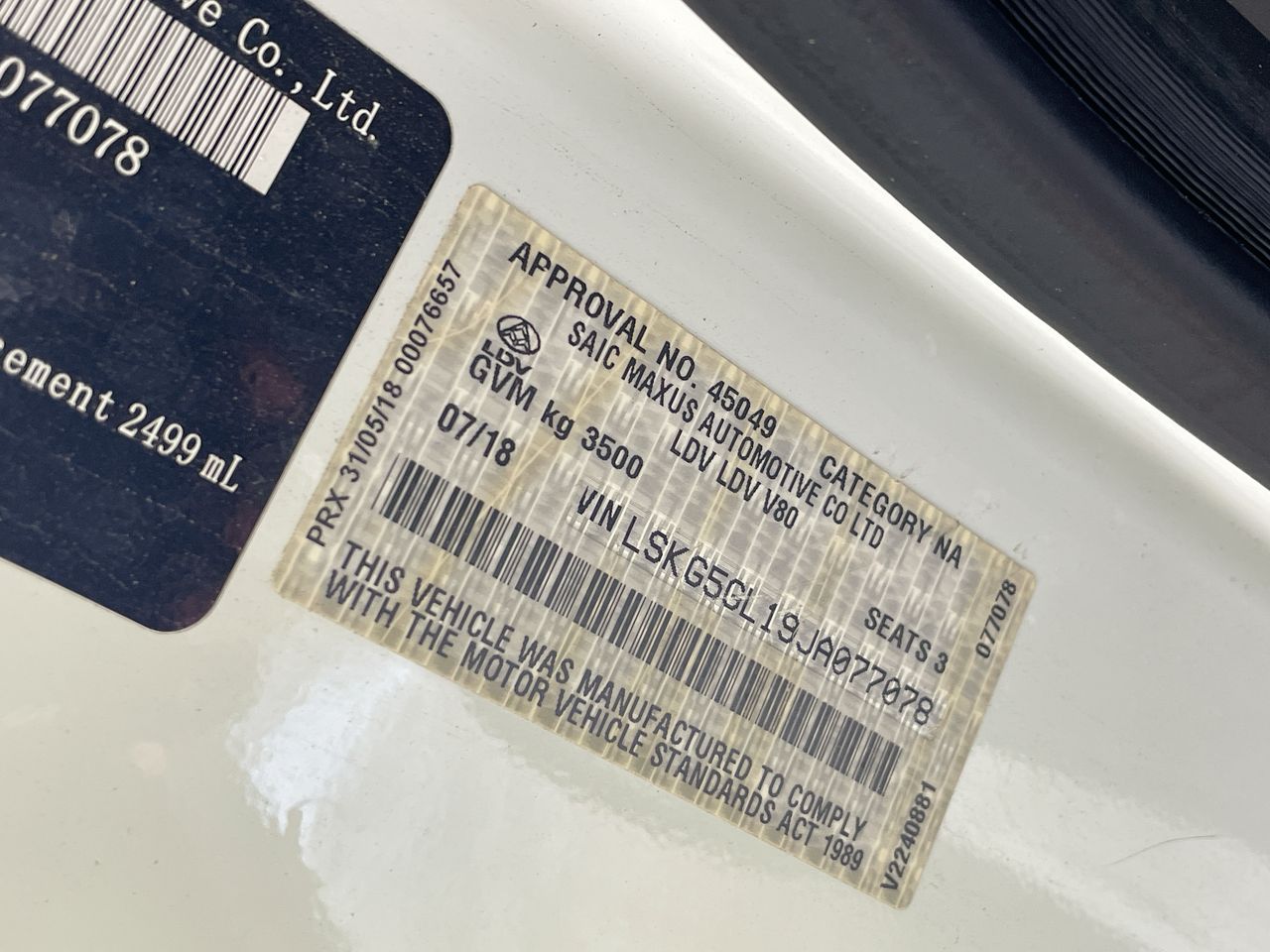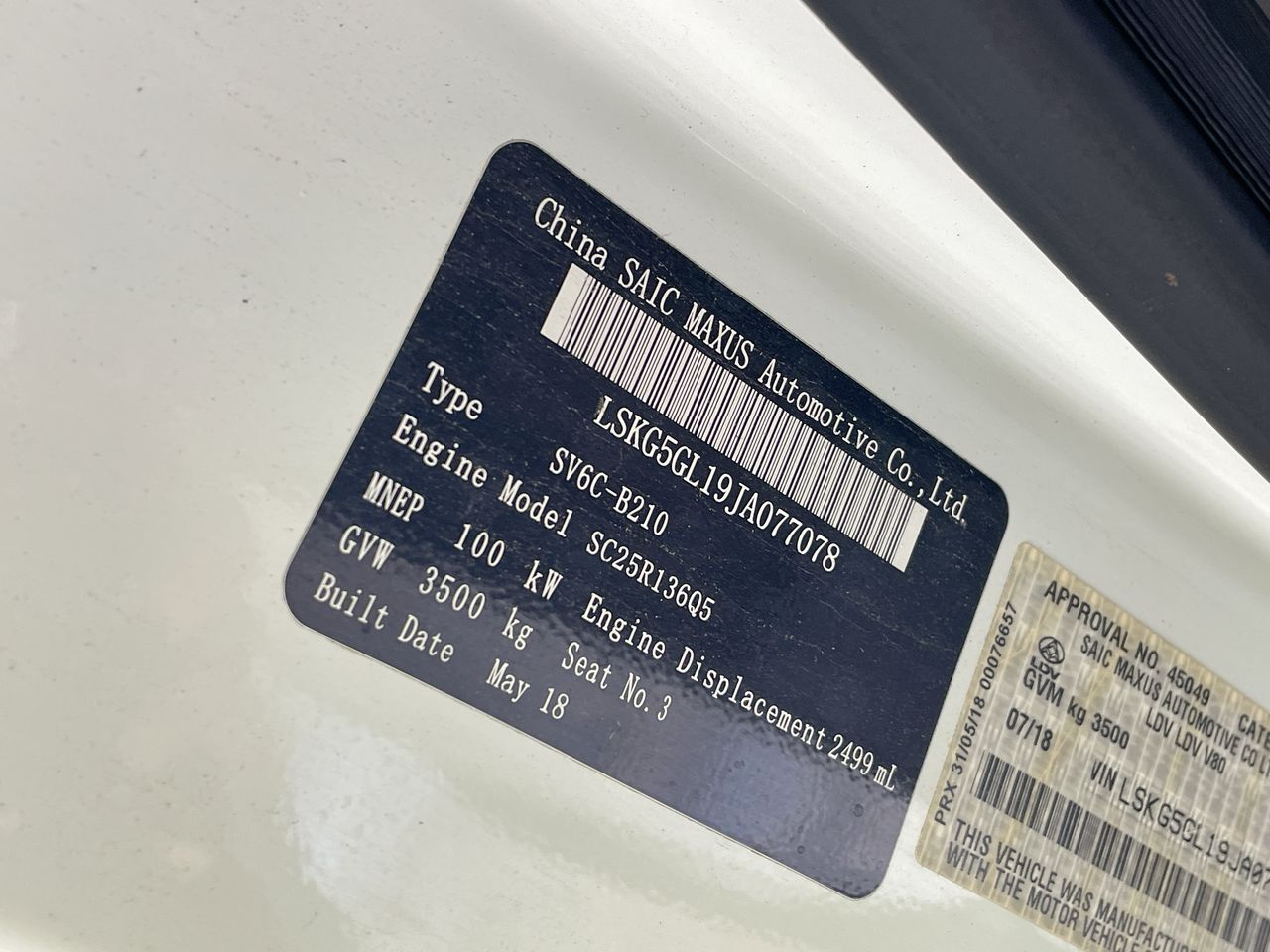 | Part of Sale | 2018 LDV V80 LWB HIGH ROOF T/D | ||||||||||||||||
