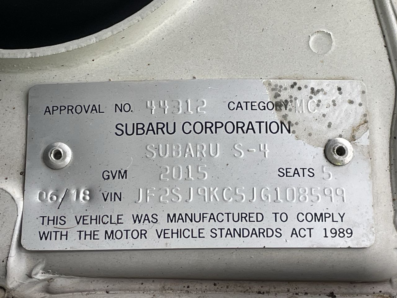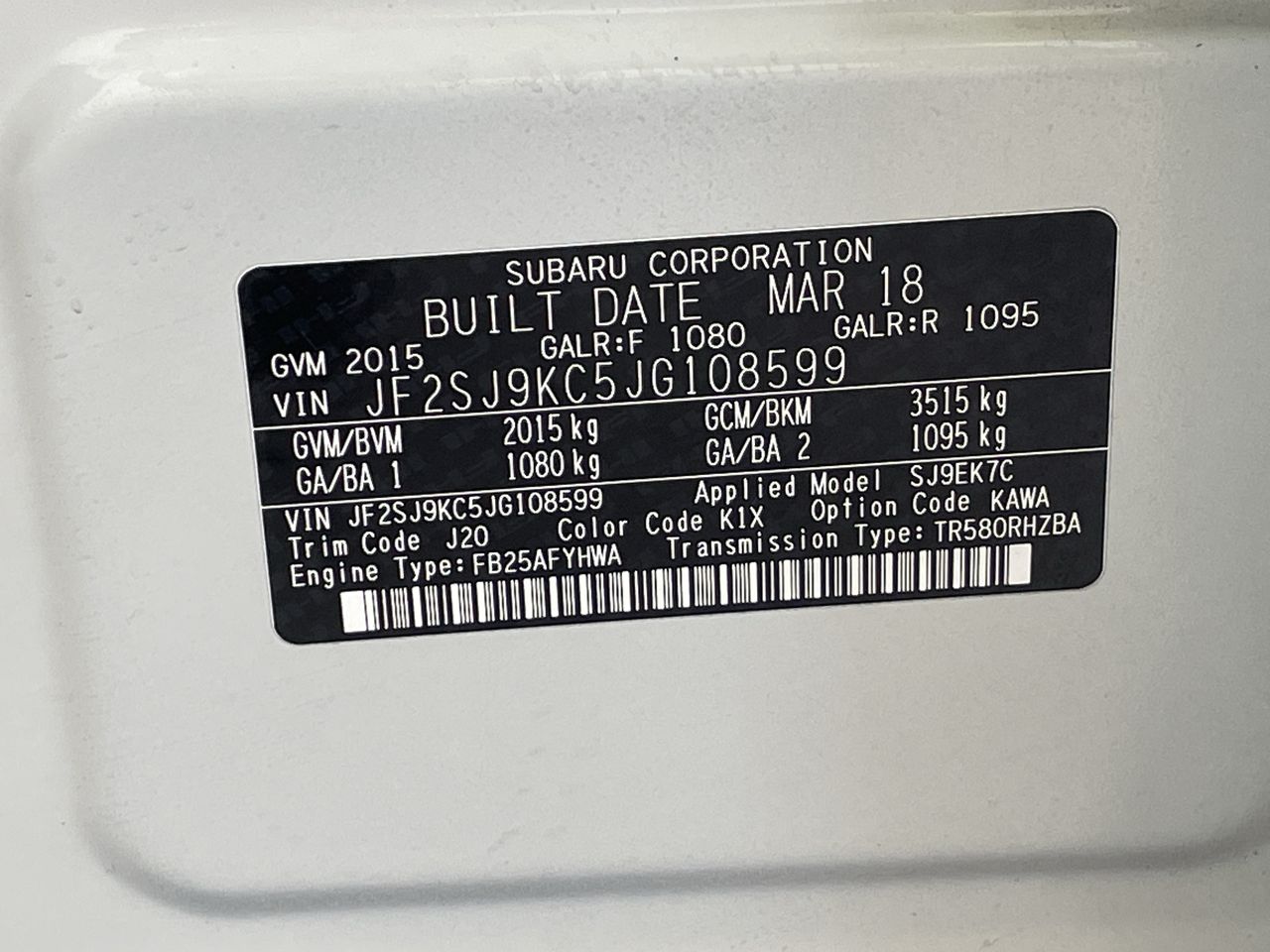 (SN:JF2SJ9KC5JG108599) (131048-114)