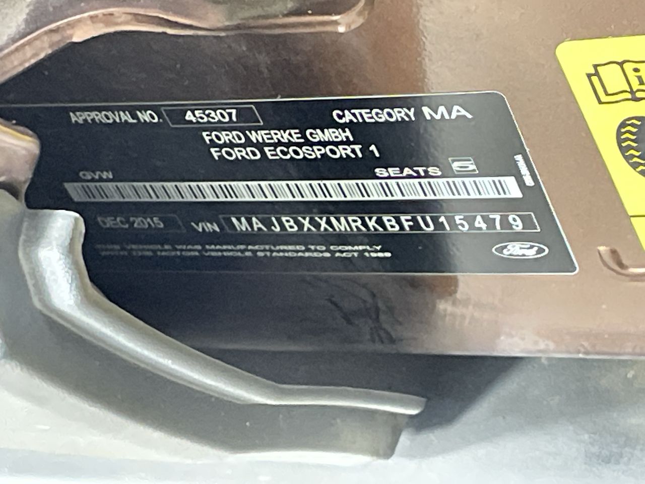 2015 Ford Ecosport Titanium BK Manual Wagon