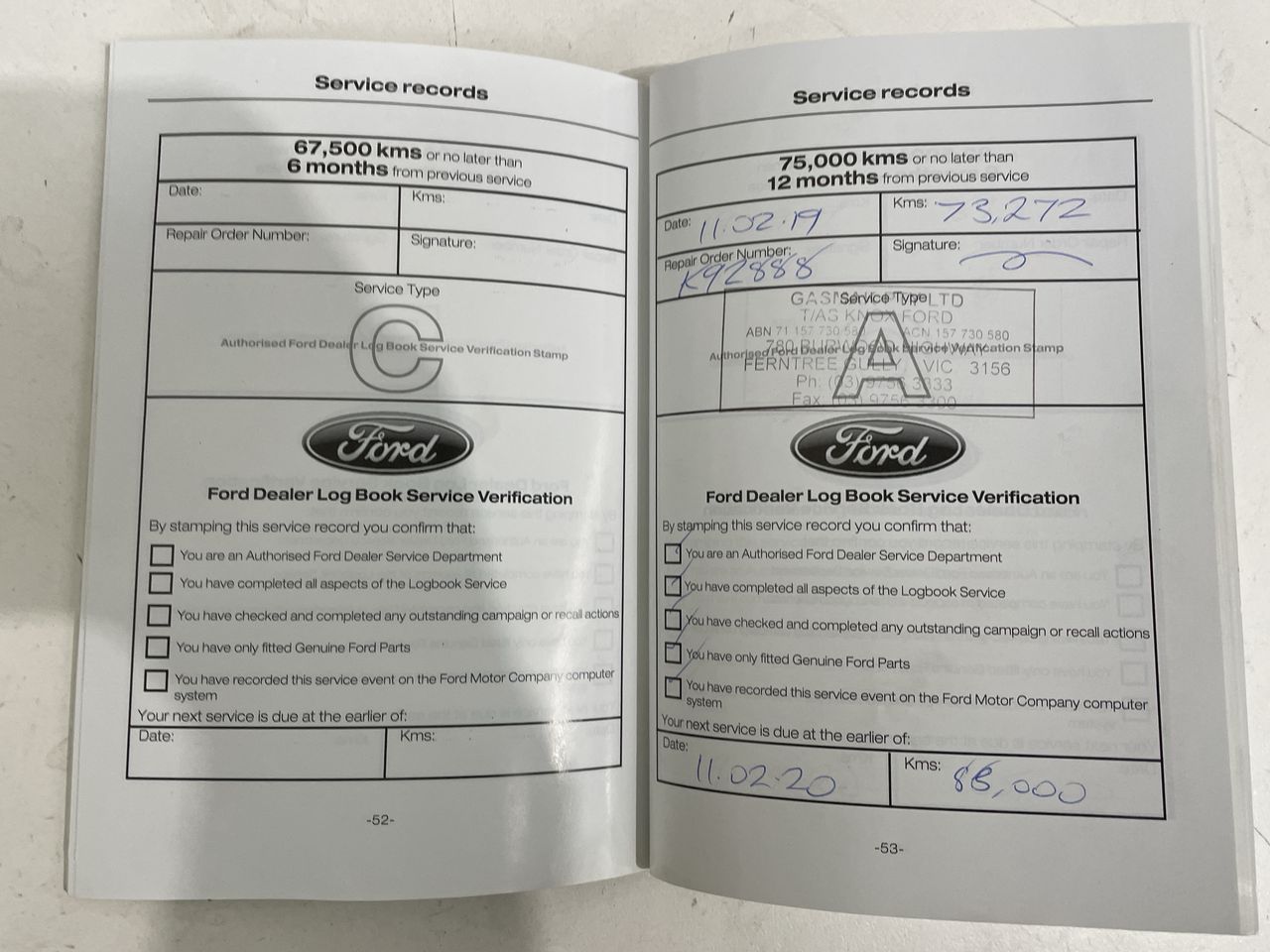 • Service History: Yes