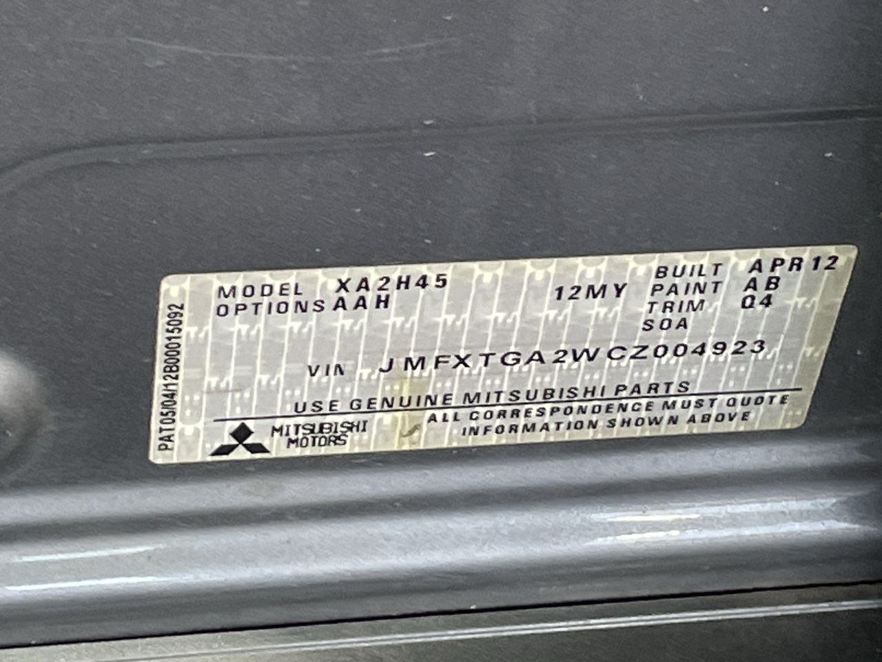 | Part of Sale | 2012 Mitsubishi ASX 2WD XA CVT Wagon | ||||||||||||||