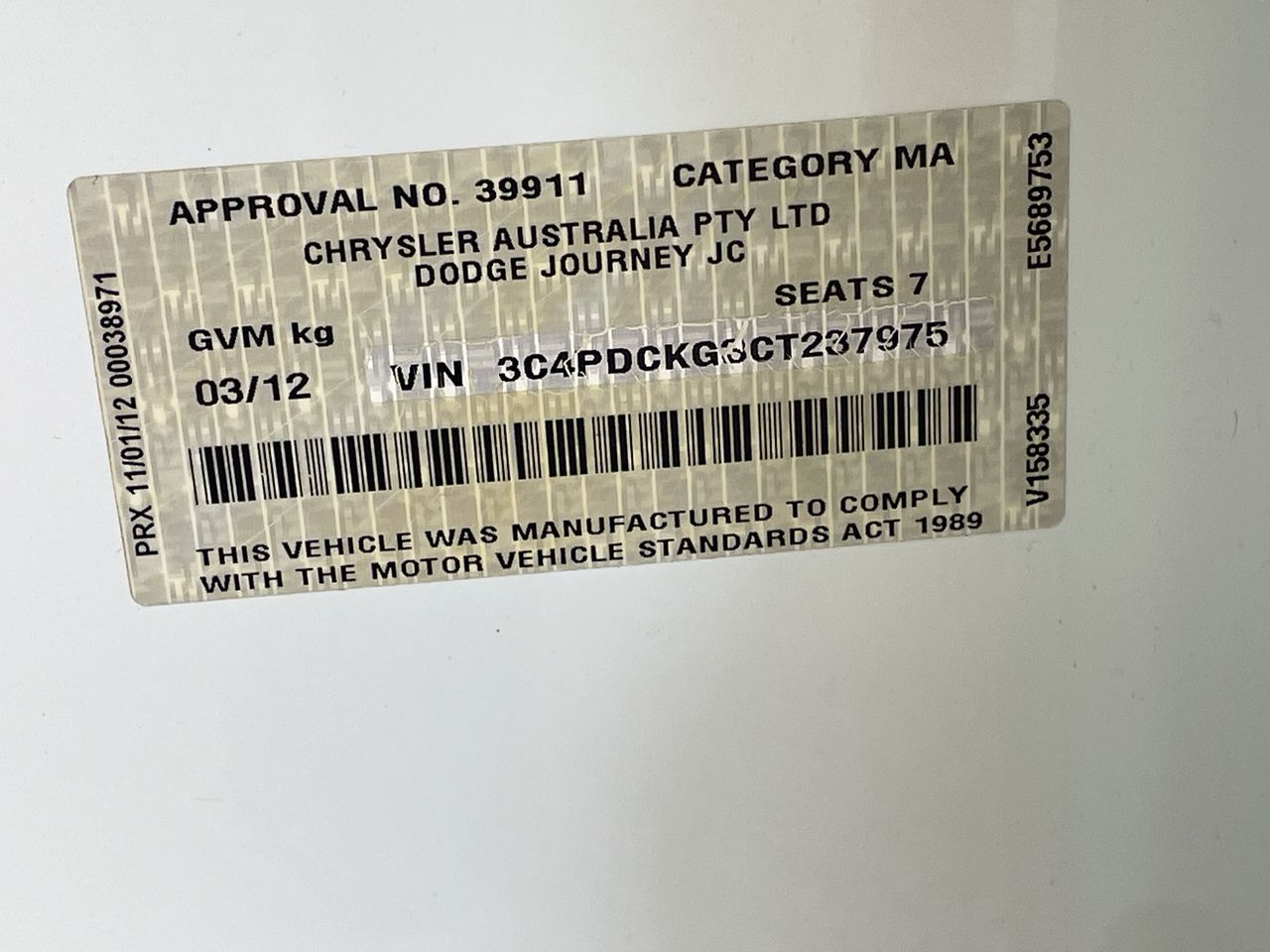| Part of Sale | 2012 Dodge Journey R/T Automatic 7 Seats People Mover | ||||||||||||||