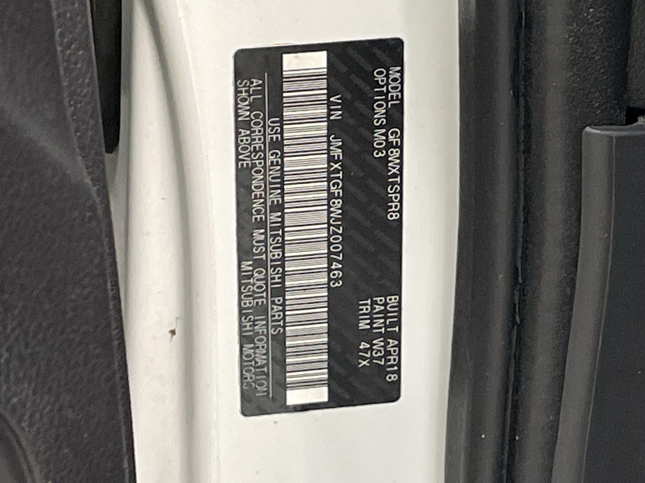• VIN: JMFXTGF8WJZ007463