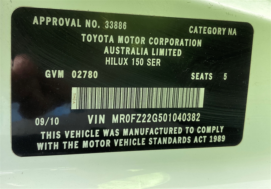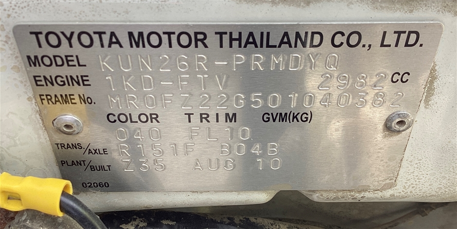 Part of Sale 2010 Toyota Hilux SR (4x4) KUN26R Turbo Diesel MT Dual Cab