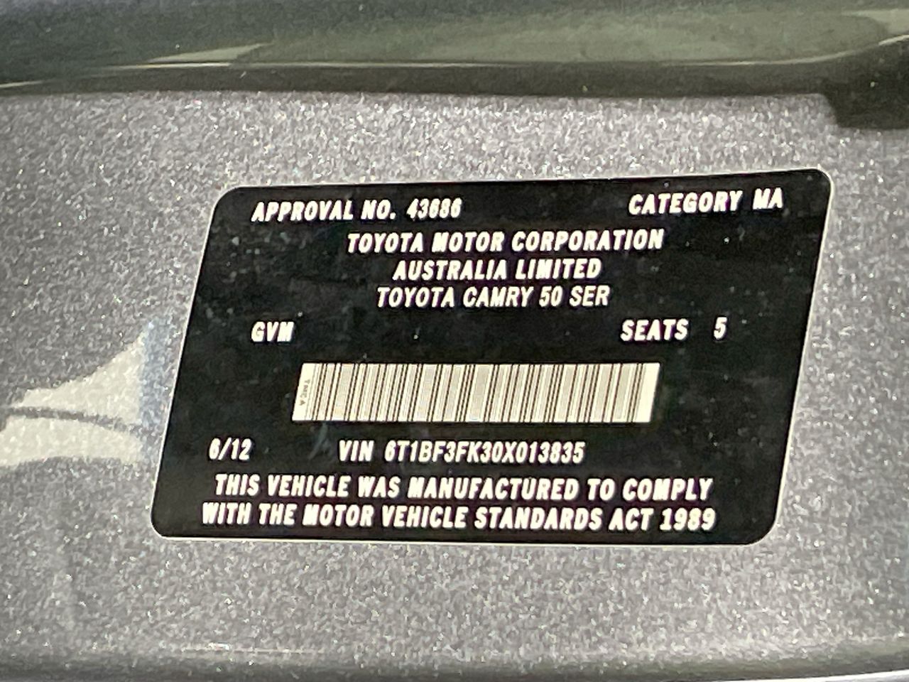 | Part of Sale | 2012 Toyota Camry Altise ASV50R Automatic Sedan | ||||||||||||||