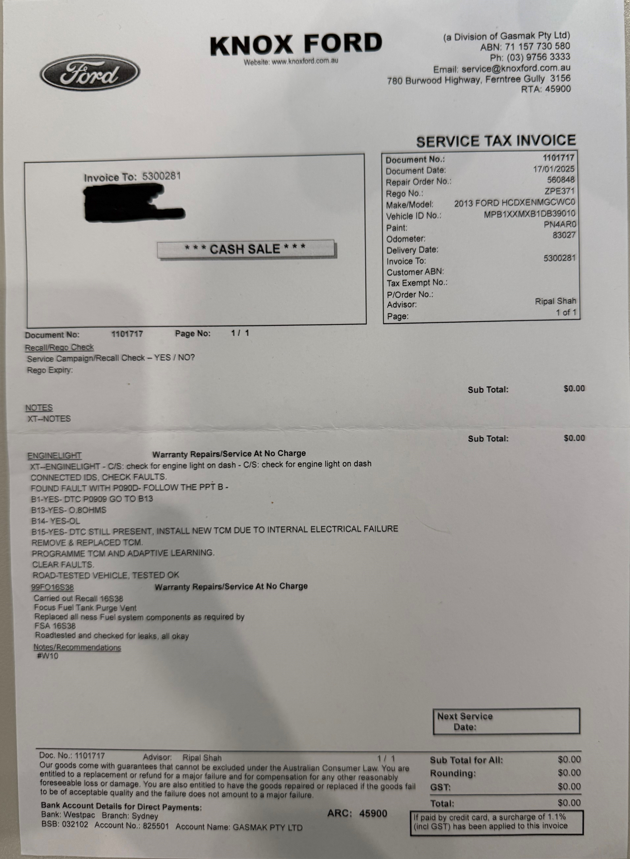 | Part of Sale | 2013 Ford Focus Trend LW II Automatic Hatchback | ||||||||||||||