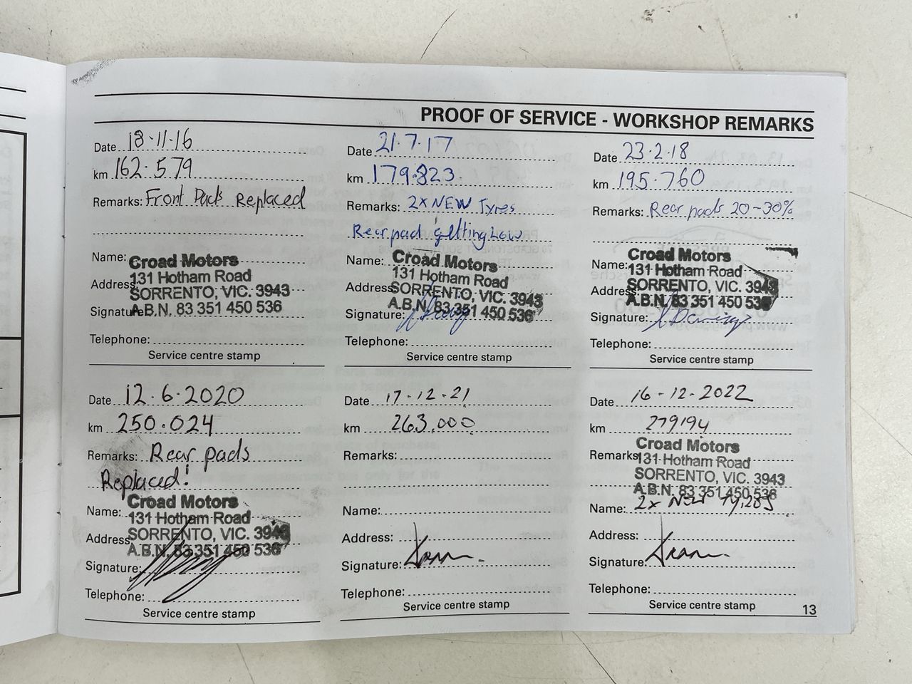 • Dents or marks on body consistent with age and kilometres.