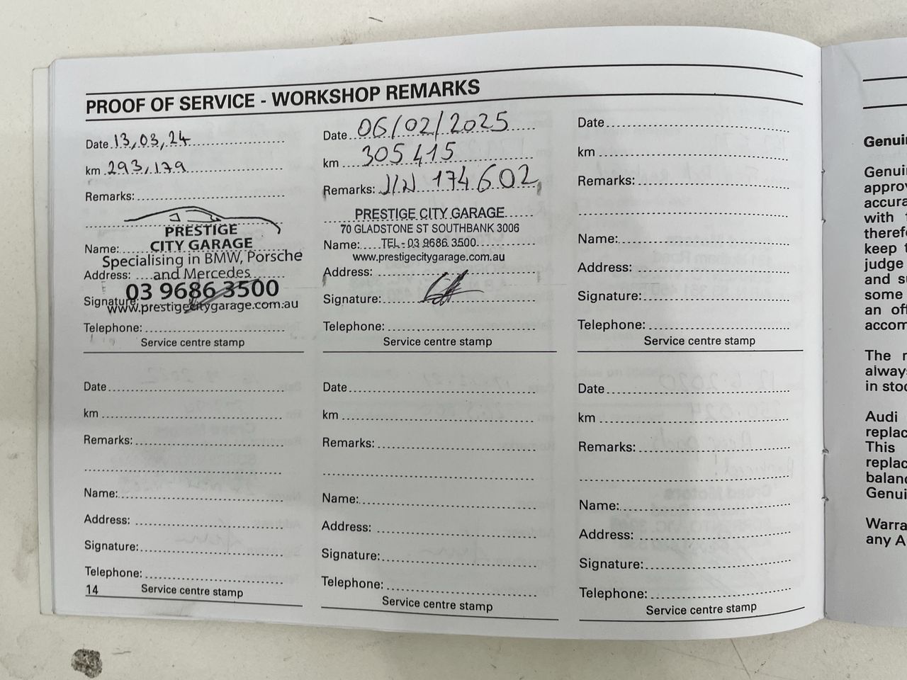 • Indicated Odometer Reading: 305586
