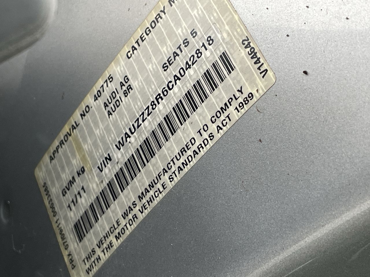• VIN: WAUZZZ8R6CA042818