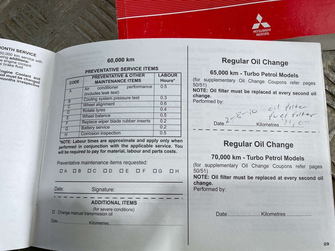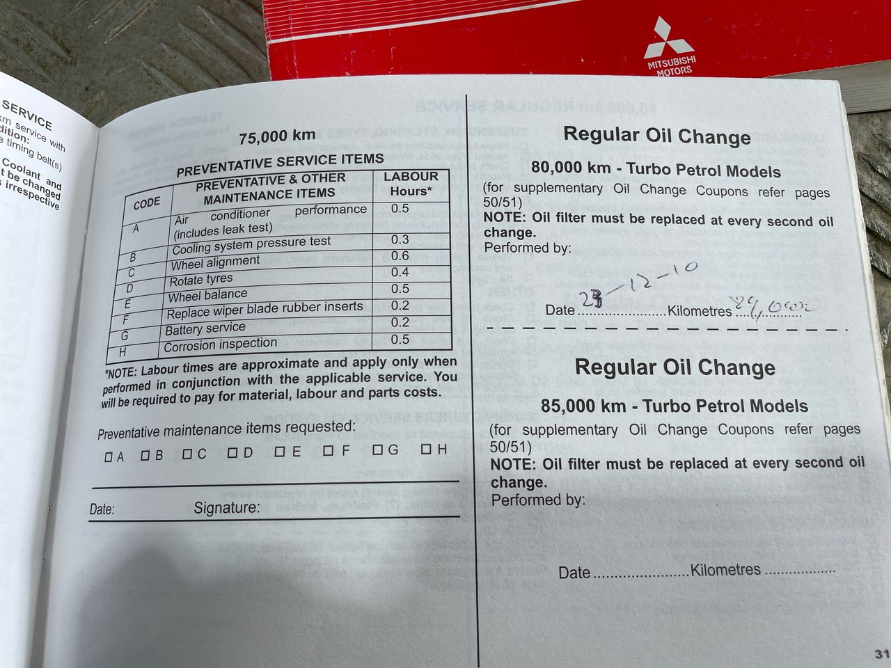 • Dents or marks on body consistent with age and kilometres.