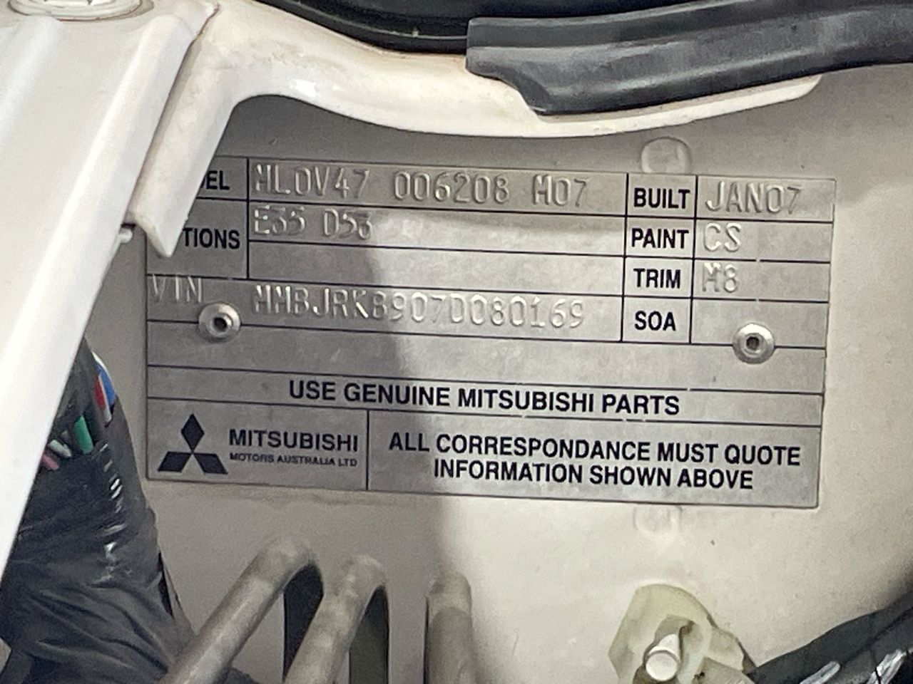 • VIN: MMBJRKB907D080169