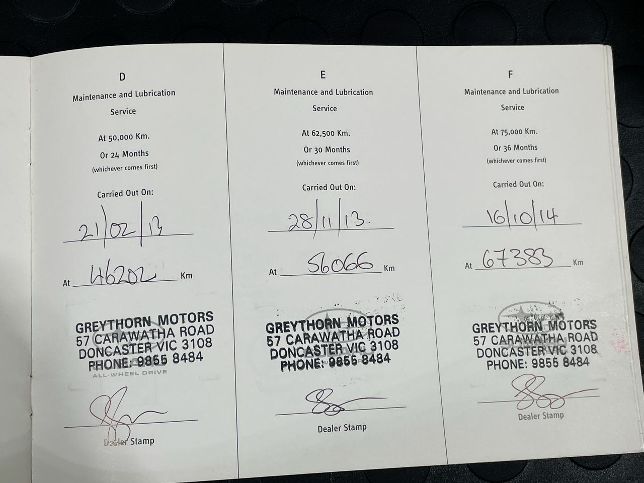 • Dents or marks on body consistent with age and kilometres