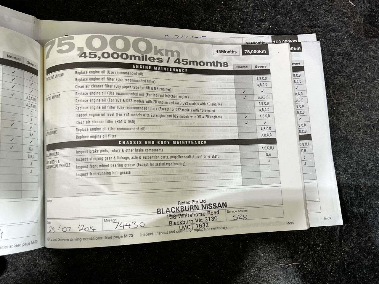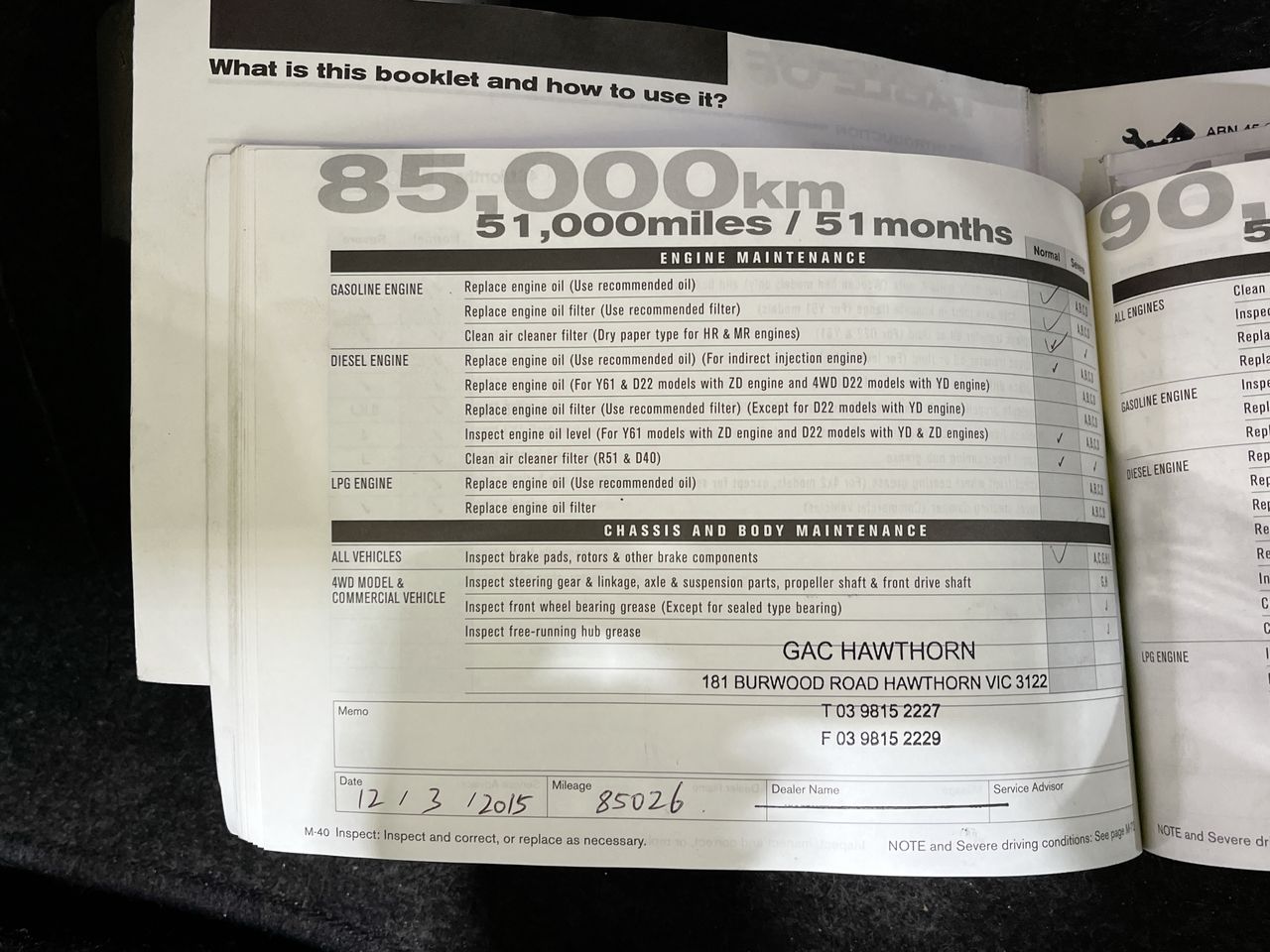 • Dents or marks on body consistent with age and kilometres.