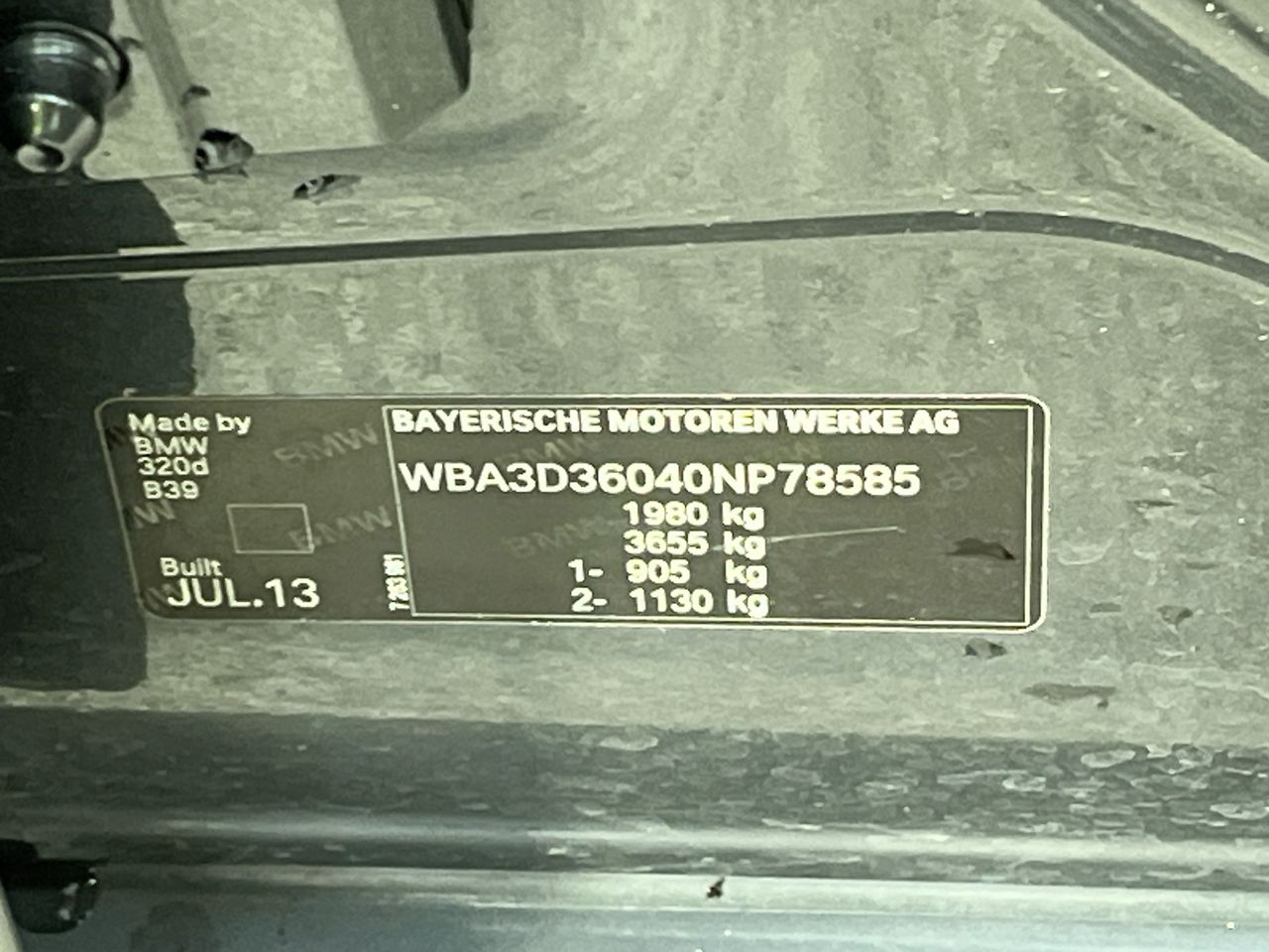 • VIN: WBA3D36040NP78585