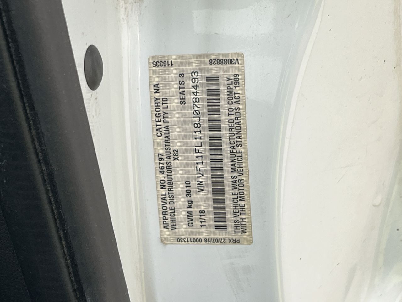 (SN:VF11FL118J0784493) (129041-2423)