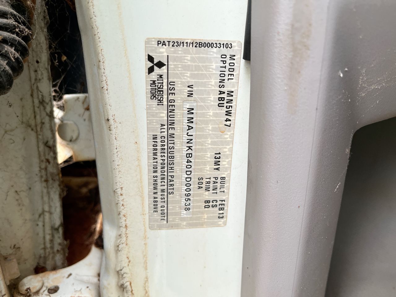 (SN:MMAJNKB40DD009538) (112943-643)