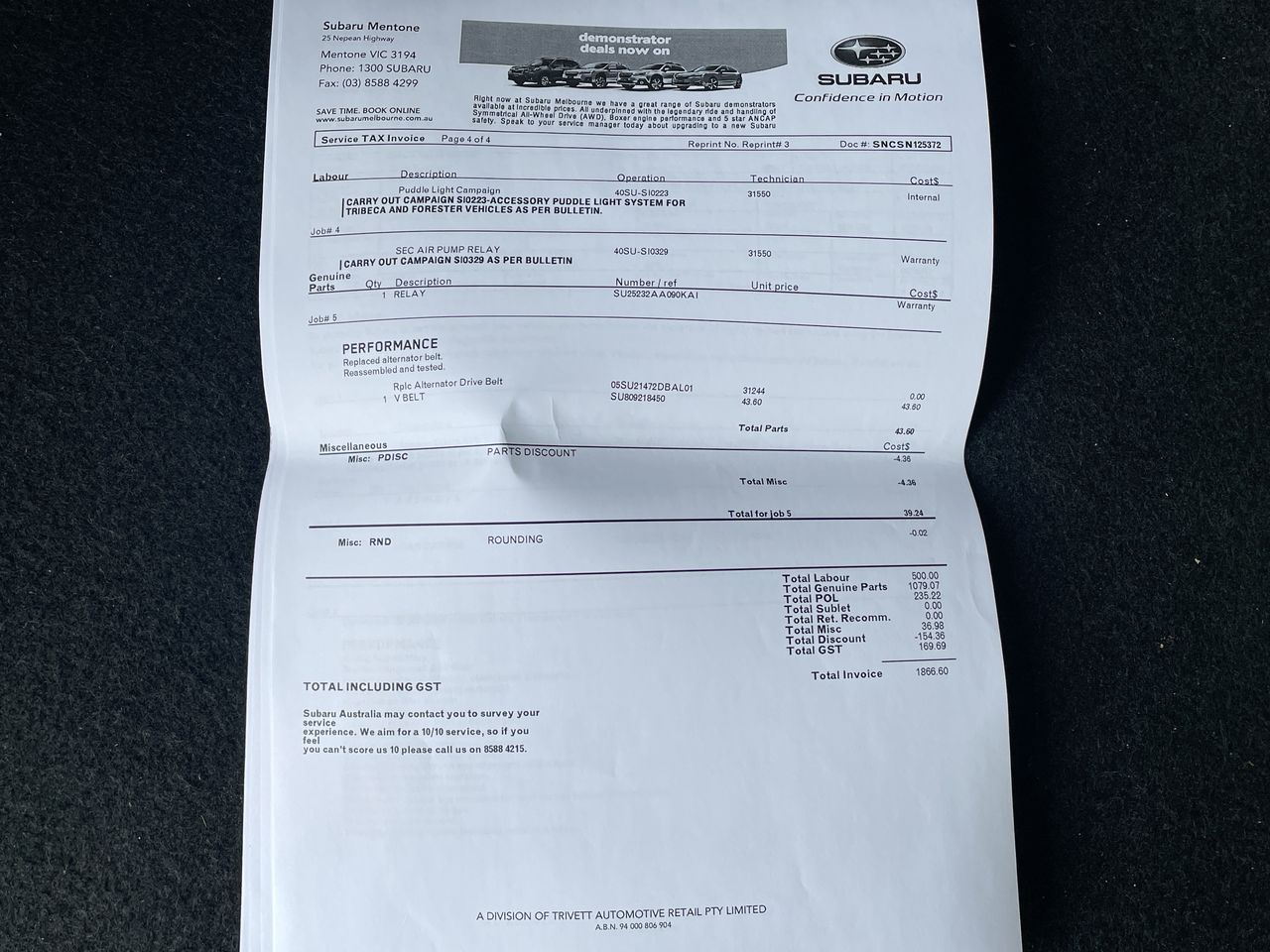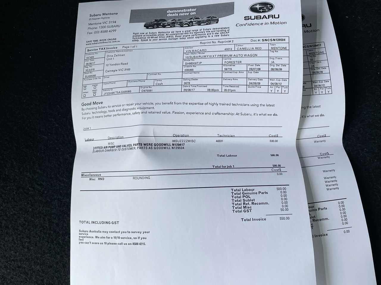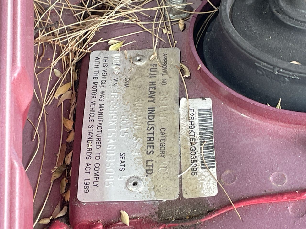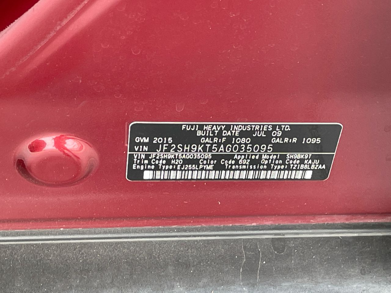 • VIN: JF2SH9KT5AG035095