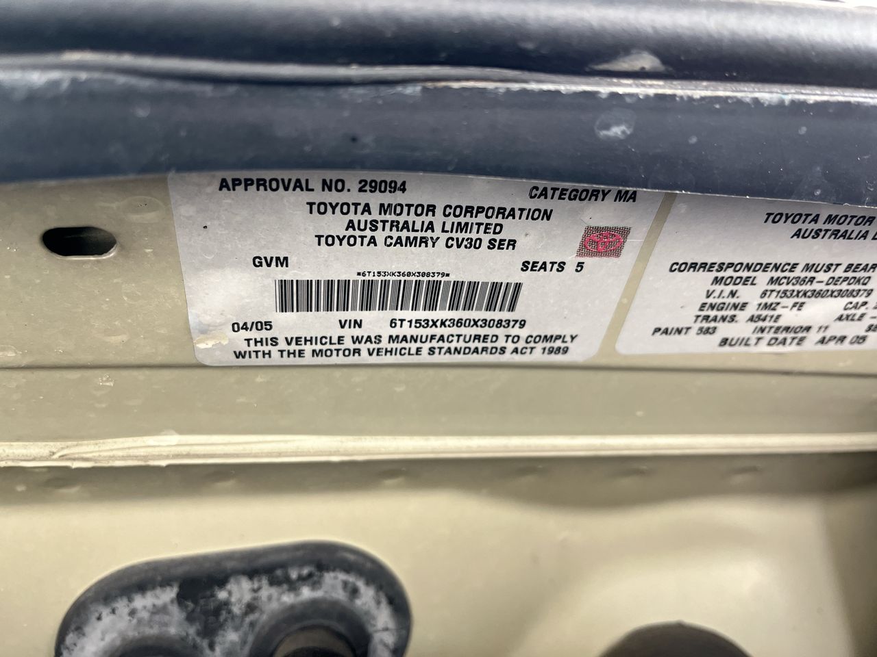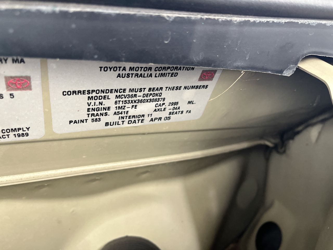 | Part of Sale | 2005 Toyota Camry Altise MCV36R Automatic Sedan | ||||||||||||||