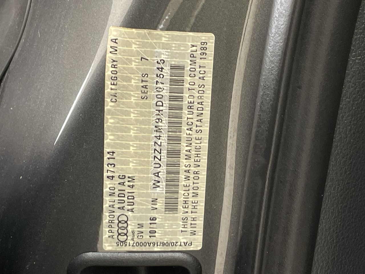 | Part of Sale | 2016 Audi Q7 3.0 TDI Quattro 4M T/D Auto - 8 Speed 7 Seats | ||||||||||||||