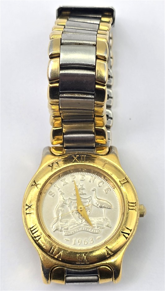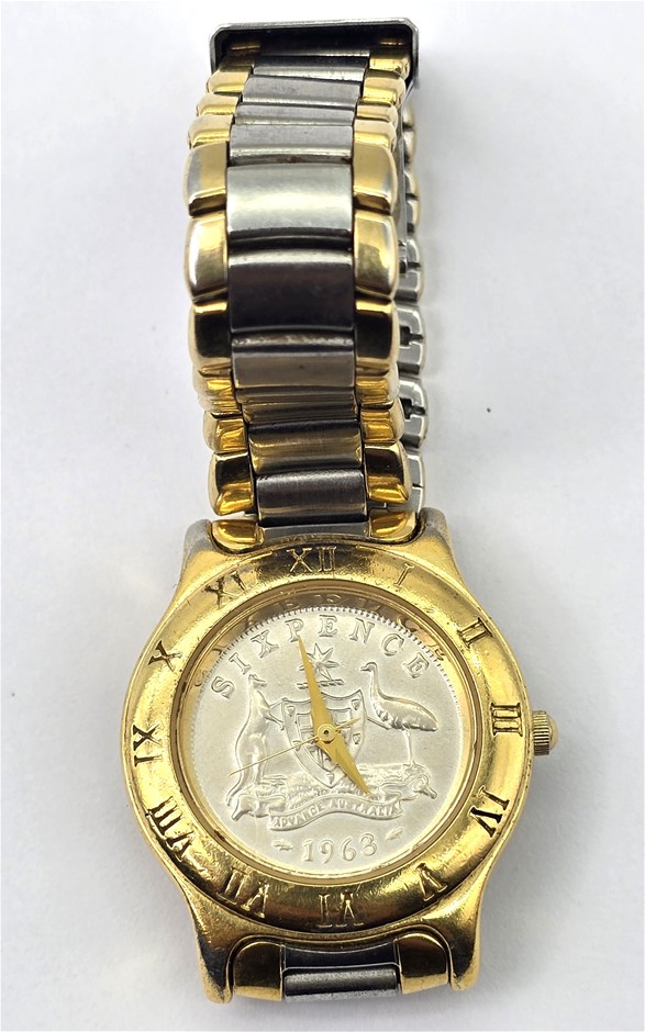 | Part of Sale | No Reserve Vintage 1963 Australian Sixpence Coin 26mm Watch | ||||