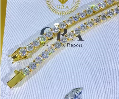 • Huge Offer from Jewelz merchants: 0.5ct white moissanite Ring in 925 sterling silver and covered by 18k Yellow gold vermeil as a gift (adjustable). 17.6cttw white lab created diamonds Moissanite Brilliant cut VVS1 Tennis Bracelet with base high-quality Solid 925 sterling silver (Stamped ) 18k Real Yellow Gold Vermeil with Passed Diamond tester with GRA Certificate. Stamped : S925 bracelet size: 19cm 100% Highest-Quality Guarantee and pass diamond test.